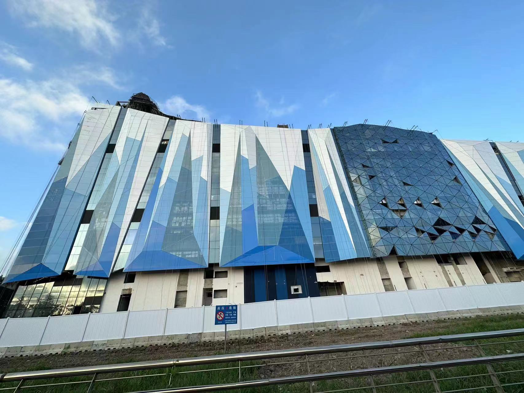 雅泰集團(tuán)承建上海臨港冰雪北區(qū)幕墻整體制作及建設(shè),本項(xiàng)目為菠蘿面異形設(shè)計,充滿現(xiàn)代感的外立面,把冰雪世界的晶瑩閃耀充分展現(xiàn)。與之相匹配的鋁幕墻板的結(jié)構(gòu)復(fù)雜,加工難度較大,全異型、超大、超寬、超長鋁板,多數(shù)板長6-7米,且角度尖銳精度要求非常嚴(yán)格。面對高難度重點(diǎn)工程,雅泰集團(tuán)快速成立項(xiàng)目攻艱突擊隊(duì),選調(diào)管理、設(shè)計、加工精英,結(jié)合理解冰雪項(xiàng)目設(shè)計特點(diǎn),最大程度達(dá)成設(shè)計師初衷。加工團(tuán)隊(duì)對異型板件進(jìn)行優(yōu)化拆解,分件加工,再進(jìn)行一體化工廠組裝集成。同時集團(tuán)擁有行業(yè)內(nèi)體量、規(guī)模均在前列,全長700米的進(jìn)口先進(jìn)噴涂設(shè)備,充分滿足超大、超長、超寬鋁板的氟碳漆面噴涂完成。